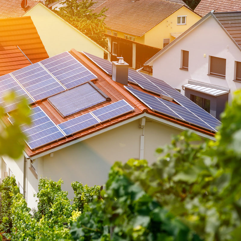 Durch eine PV-Anlage zur Stromerzeugung machen Sie sich unabhängiger und schützen die Umwelt. So kann beispielsweise Ihre Wärmepumpe betrieben oder Ihr E-Auto geladen werden.